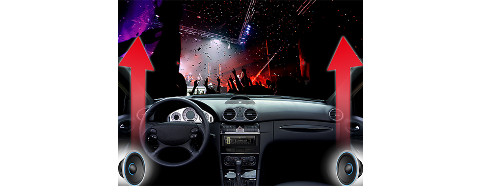 Space Enhancement is a virtual surround technology using 2 speakers. Simply select the vehicle size, and the receiver automatically adjusts the sound effectively.