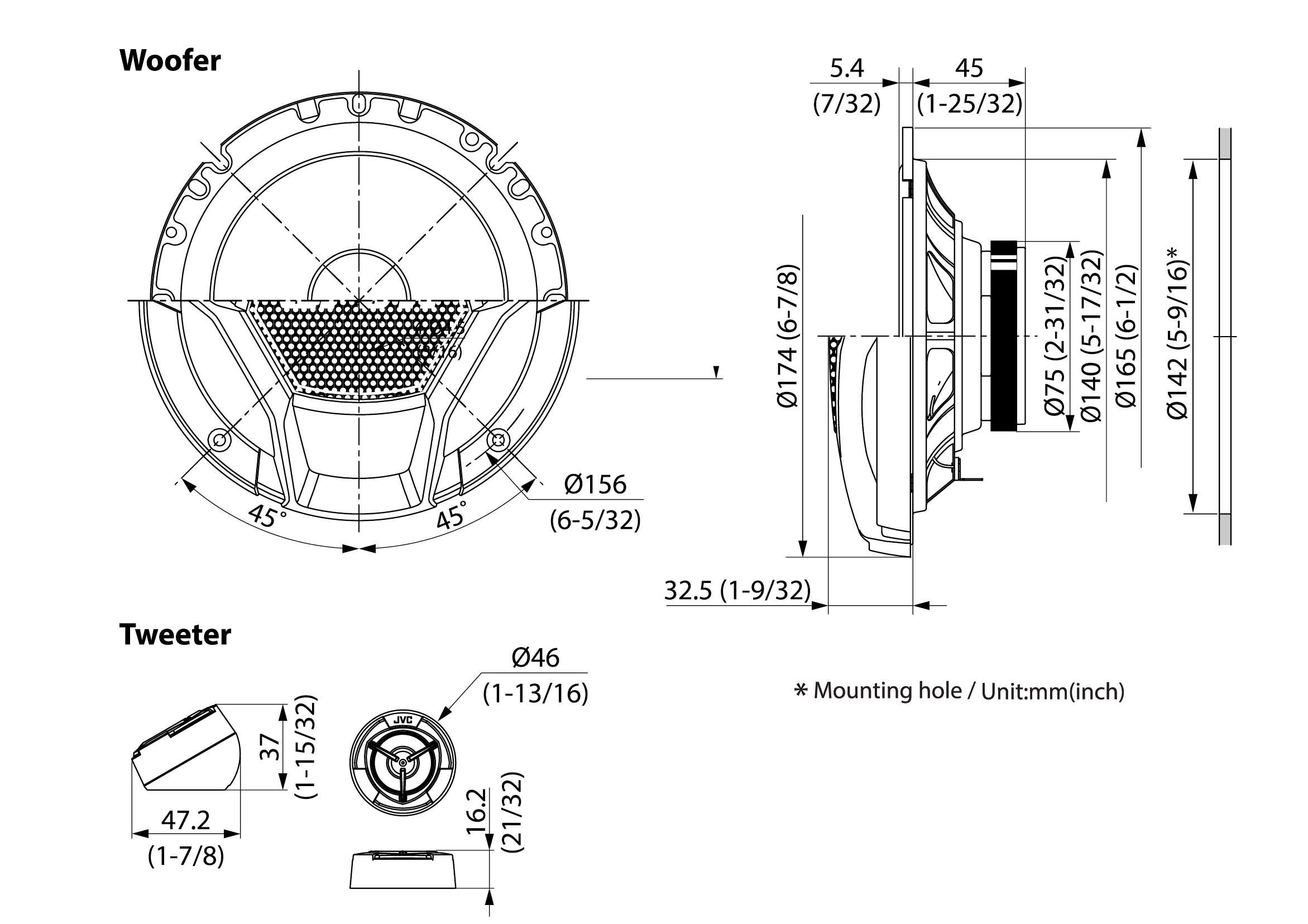 Newly developed small cover significantly reduces areas that interfere with the woofer cone. High-quality sound is assured.